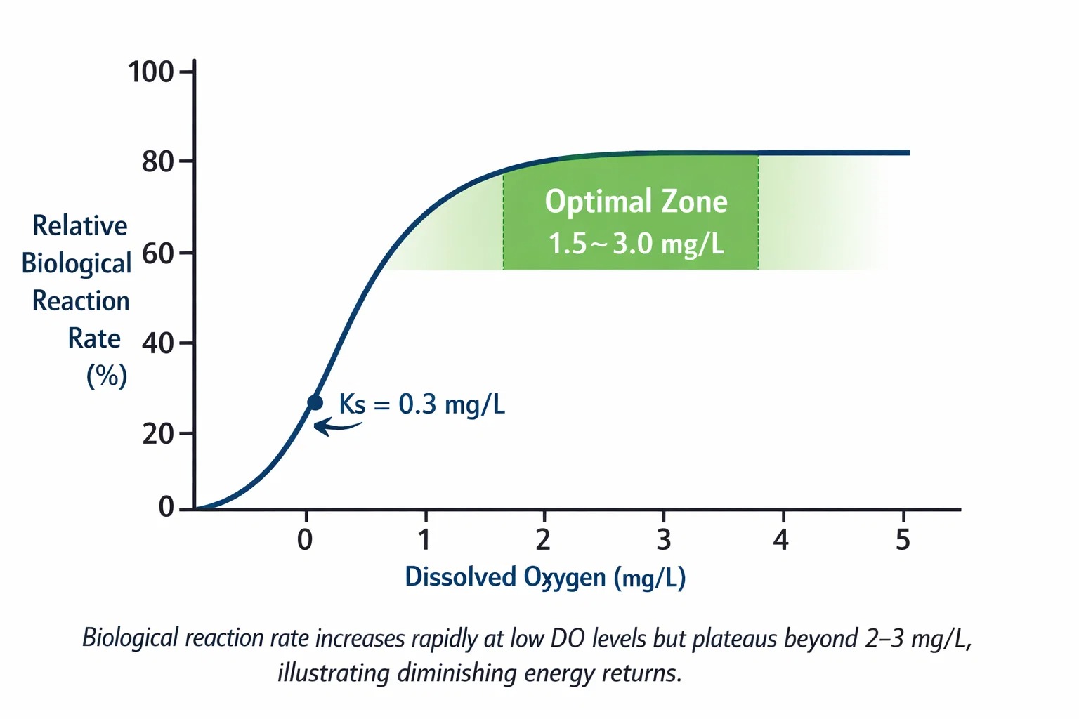 Sterowanie DO: Utrzymuj 1,5–3,0 mg/l, aby uzyskać optymalną kinetykę drobnoustrojów; poniżej 0,5 mg/l grozi załamaniem nitryfikacji.