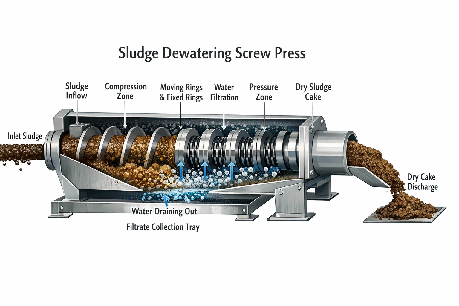 3. Substancje stałe z tyłu: Prasa śrubowa do odwadniania osadu