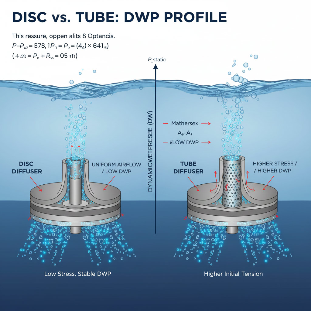 Jeśli „kapilary” (szczeliny dyfuzora) stają się wąskie lub sztywne, „serce” (dmuchawa) musi pompować znacznie mocniej, aby przepuścić tę samą ilość natlenionej „krwi” (powietrza) przez system. Jest to zasadniczo „wysokie ciśnienie krwi” dla Twojej rośliny. Możesz nadal osiągnąć docelowe poziomy DO, ale Twój sprzęt jest poddawany ogromnym obciążeniom, a rachunki za energię gwałtownie rosną.